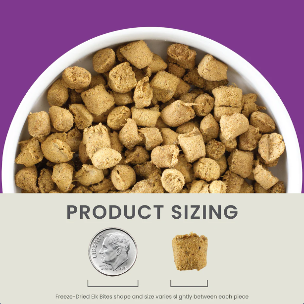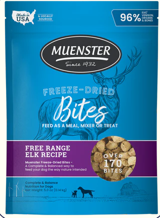 Muenster Milling Co. Freeze Dried Bites Free Range Elk Recipe is formulated to meet the nutritional levels established by the AAFCO (Association of American Feed Control Officials) Dog Food Nutrient Profiles for all life stages including growth of large size dogs (70 lb. or more as an adult).